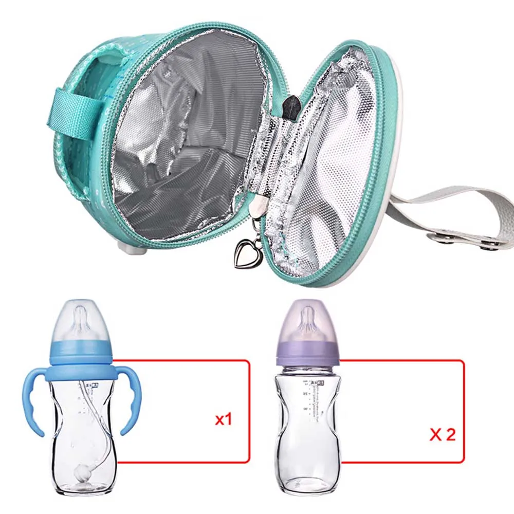 -Нагреватель бутылки мягкий и складной, с ручками, очень портативный и легко хранить. Двусторонняя молния позволяет получить доступ к одиночным или двойным бутылкам с легко открывающимся ремешком, прикрепленным к коляске.