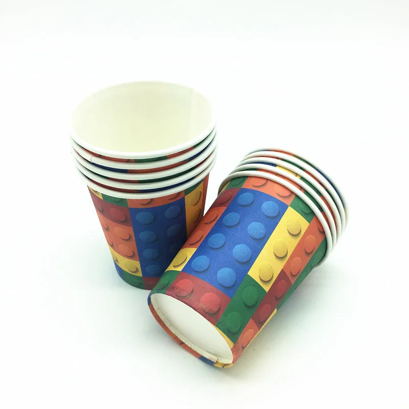Legoing блоки, вечерние принадлежности, одноразовая посуда, бумажный стаканчик, тарелка, соломенная скатерть, Детские вечерние украшения для дня рождения