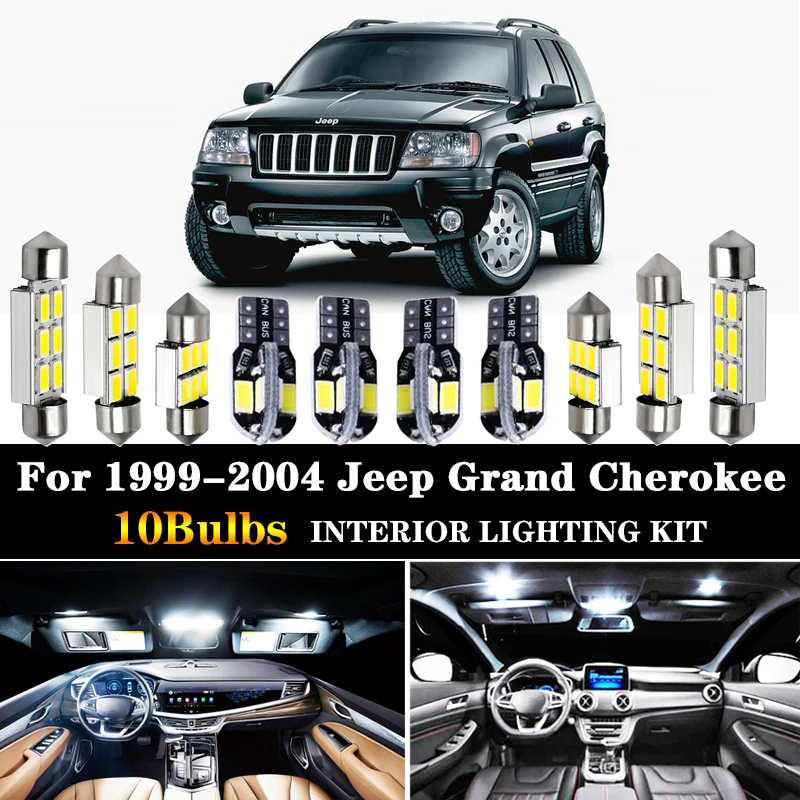 Этот список представляет собой белый набор из 10 предметов для внутренней посылка для Jeep Grand Cherokee 1999-2004 Наш Светодиодный Светильник изготовлен из более ярких чипов премиум класса 5630 SMD, которые имеют более длительный срок службы по сравнению с другими.