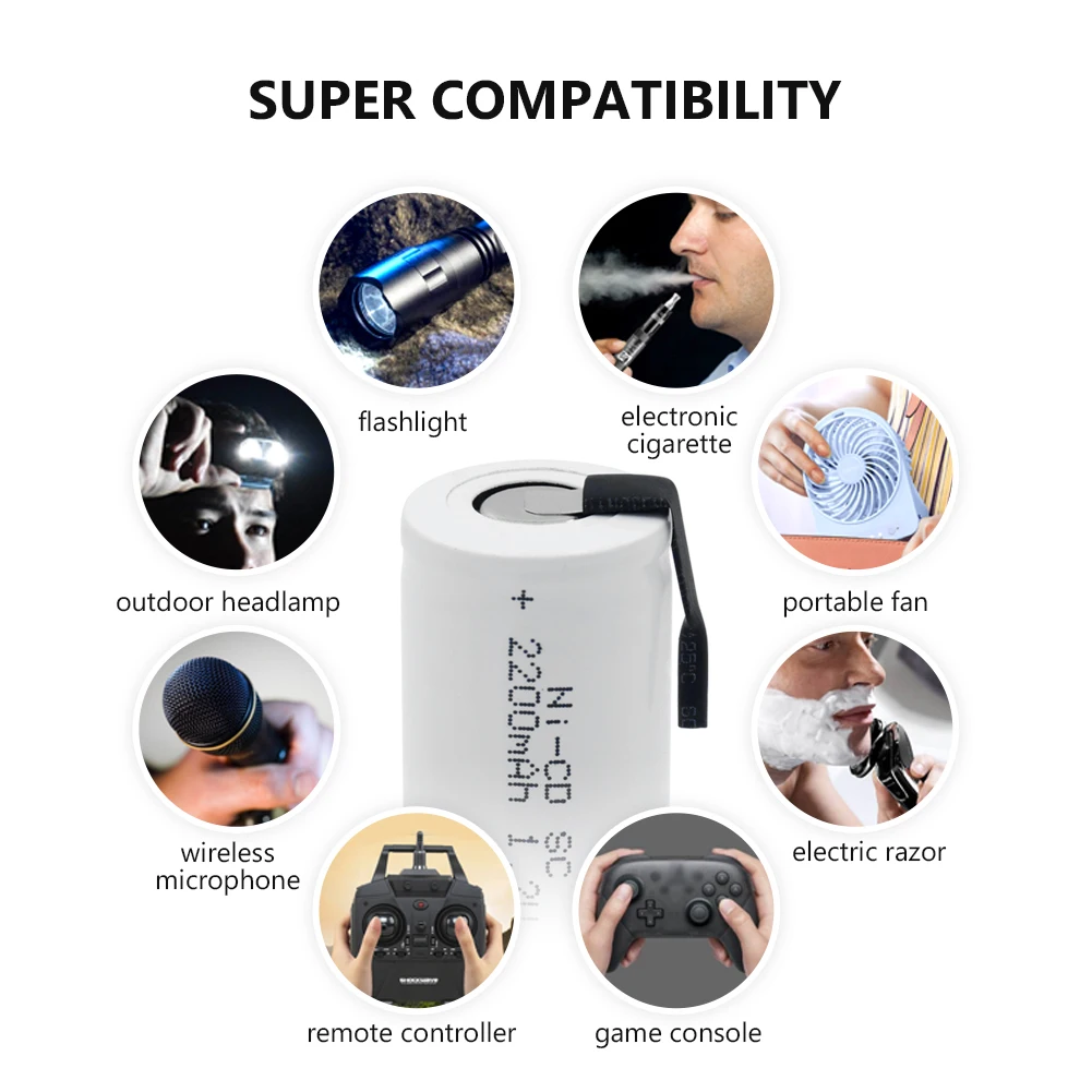 1-10 шт. высокая энергия 2200mAh 1,2 V Sub C/SC Ni-Cd батарея с вкладками аккумуляторные батареи для портативных устройств электроинструменты