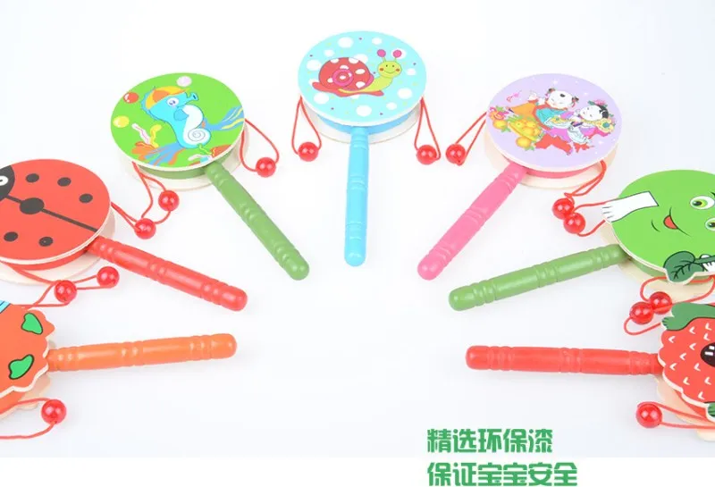 Детский музыкальный инструмент, погремушка с героями мультфильмов, барабан, ручной Колокольчик, деревянная игрушка, перкуссия, для раннего развития, Интерактивная игрушка, музыкальный