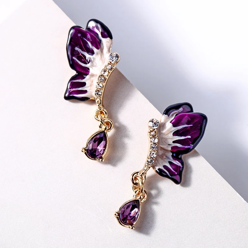 Благородные эффектные длинные висячие серьги с кристаллами, крыльями бабочки, тайна, Фиолетовое Стекло для женщин, модные ювелирные изделия, Новое поступление аксессуаров
