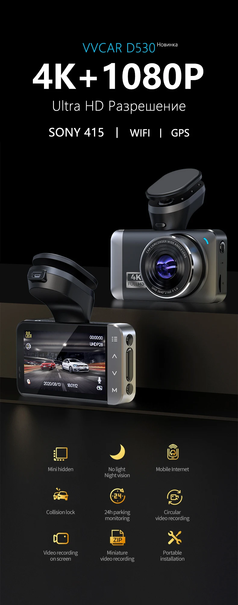 Автомобильный видеорегистратор 96650 AT500 DVRS Full HD 1080P рекордео для видеорегистратора