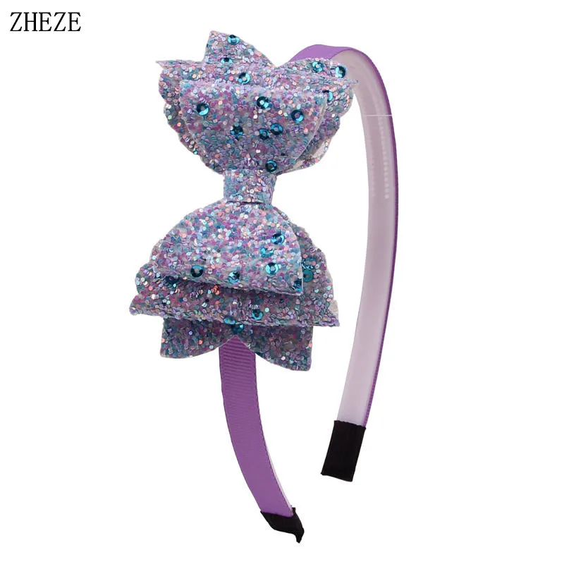 15 шт./лот; Блестящая повязка на голову с бантом для девочек; Многослойная повязка на голову с блестками и цветами; Бант для волос; Детская блестящая головная одежда