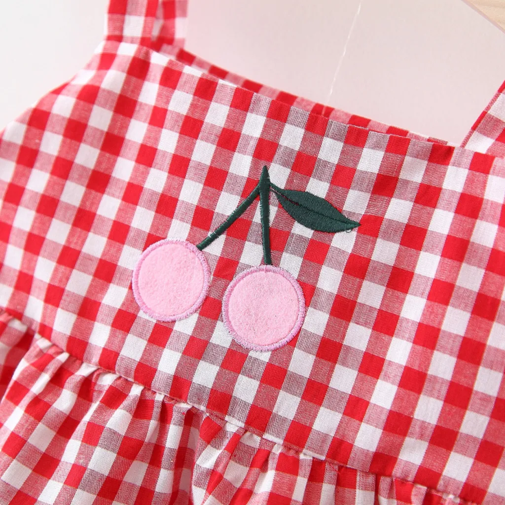 Клетчатые топы на бретельках с вишенками для маленьких девочек; однотонные шорты с рюшами; комплекты со штанами