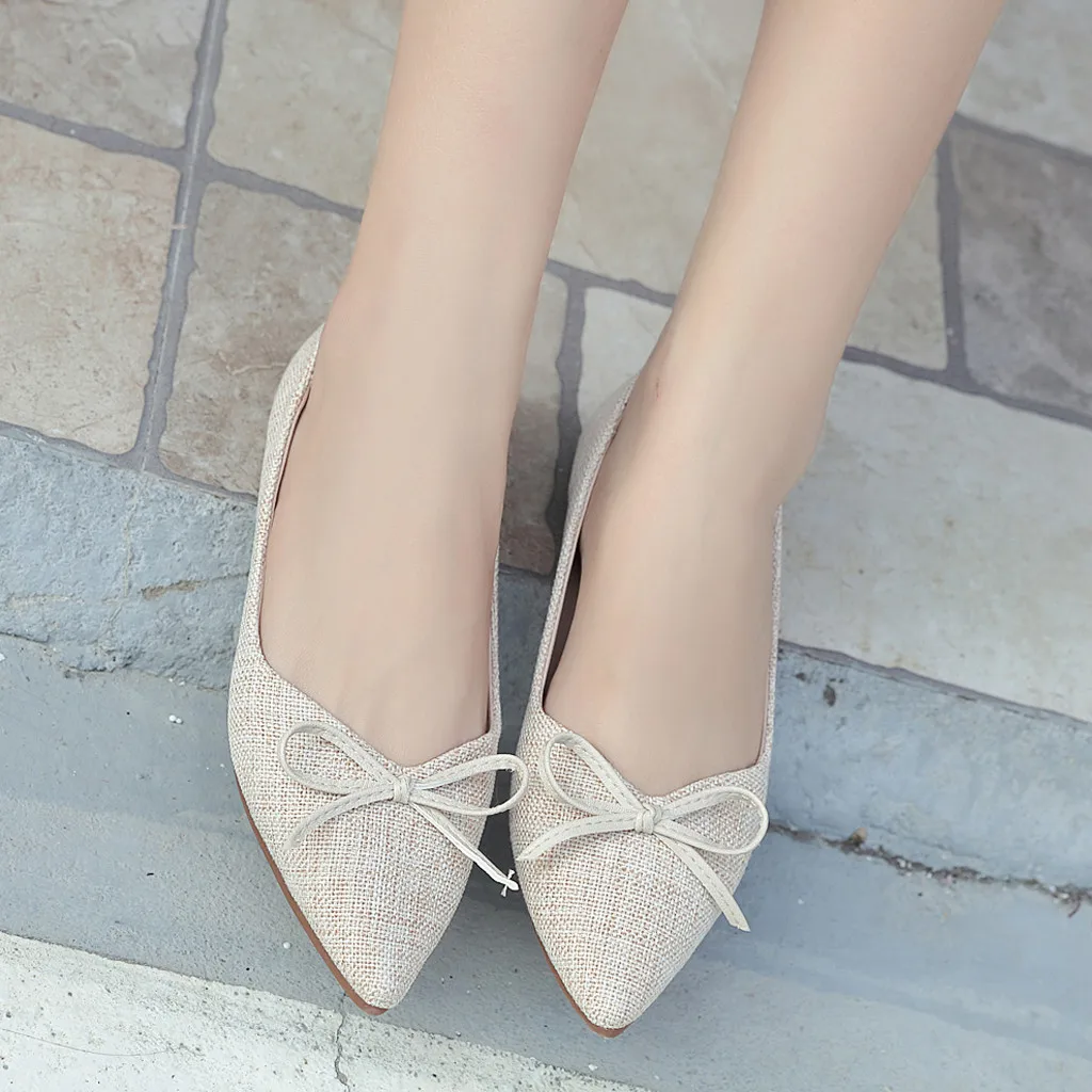 Женская обувь на плоской подошве с закрытым носком; тонкие туфли с бантом на мягкой подошве; женская обувь