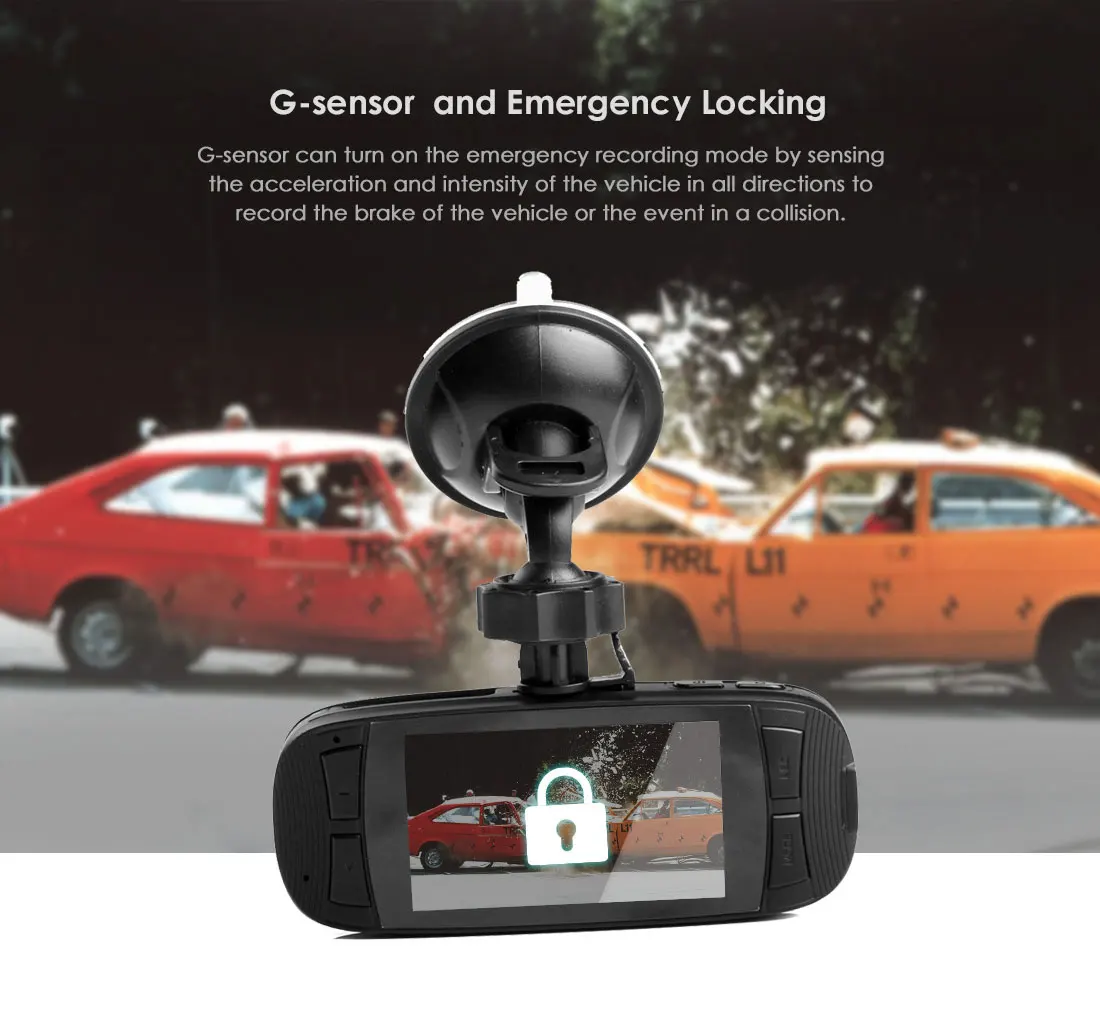 G-сенсор может включить режим аварийной записи, обнаружив ускорение и интенсивность транспортного средства во всех направлениях для записи тормозов транспортного средства или события в случае столкновения.