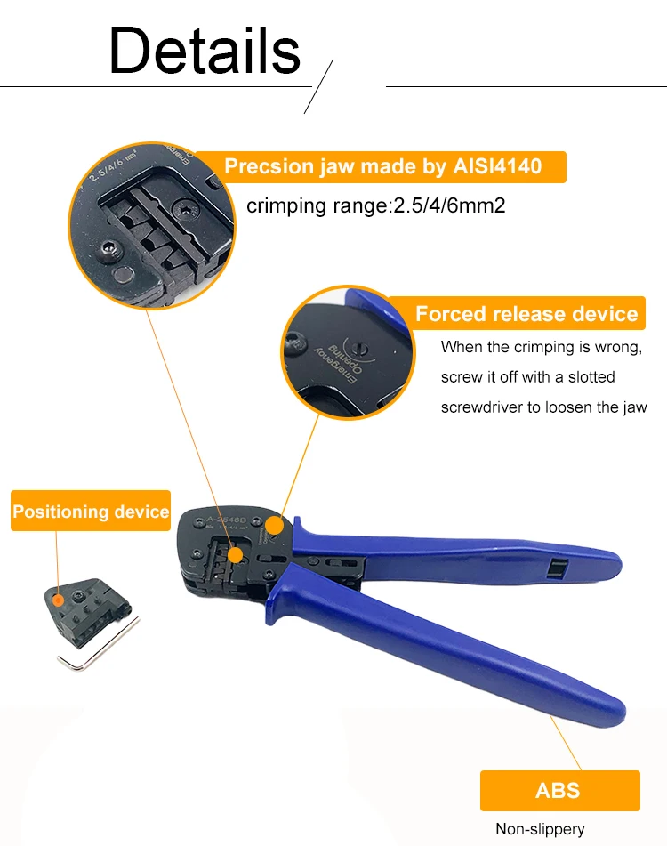 1. Обжимной Ёмкость: 2,5-6 mm2 (AWG: 14-10) 2. Длина: 270 мм 3. Вес: 0,73кг