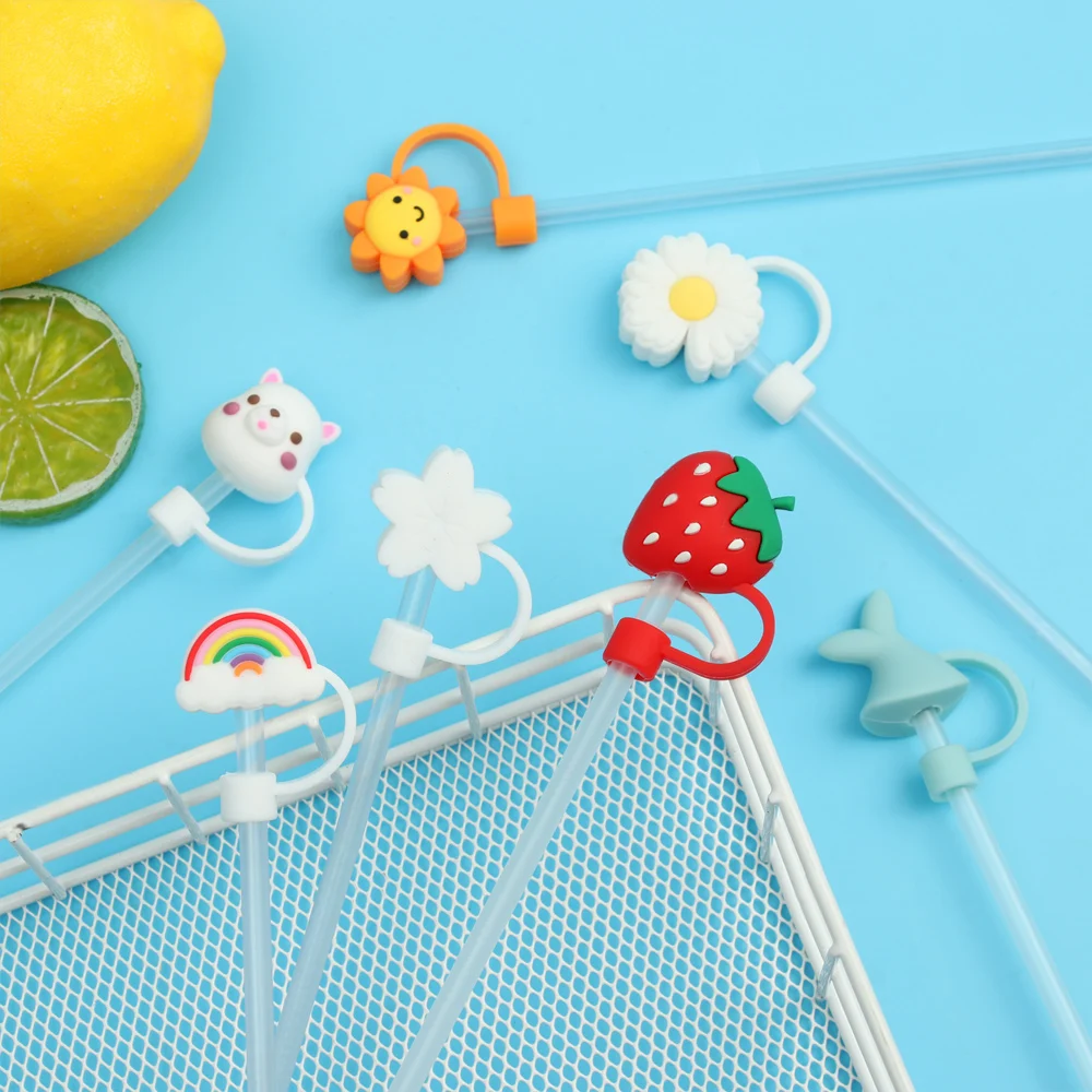 Силиконовая соломенная вилка, многоразовая герметичная Питьевая Пылезащитная крышка, аксессуары для чашки, Мультяшные вилки, наконечники, чехол для соломинки 6-8 мм