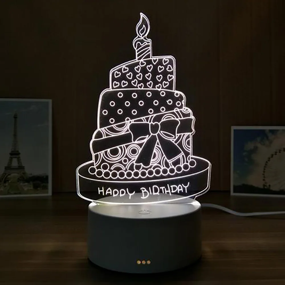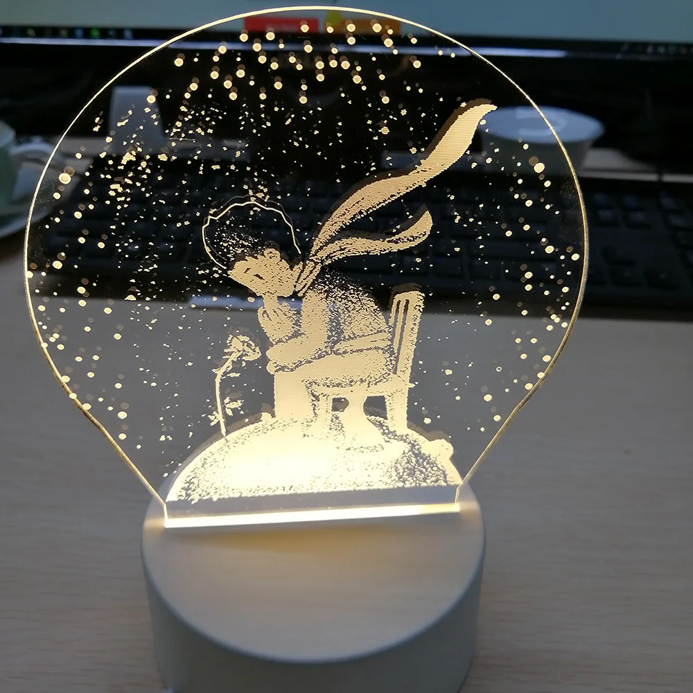 Как Применение? Шаг 1: Снимите пленку Шаг 2: вставьте акриловую пластину в основание и подключите источник питания с помощью usb-кабеля; Шаг 3: Нажмите кнопку питания, чтобы включить светильник; Идеально подходит для: Офис/отель/гостиная/спальня/кофе бар/КТВ/подарок/День рождения/праздник и так далее Посылка в комплект входит: 1 x 3D светодиодный ночной Светильник 1 основание с Micro USB