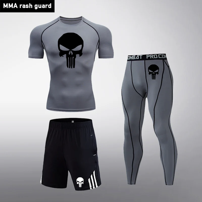 Мужской костюм для пробежек, комплект из 3 предметов, компрессионная футболка с длинными рукавами, леггинсы, шорты, соединение, подходит для тренировок в тренажерном зале, Быстросохнущий тренировочный костюм, спортивная одежда