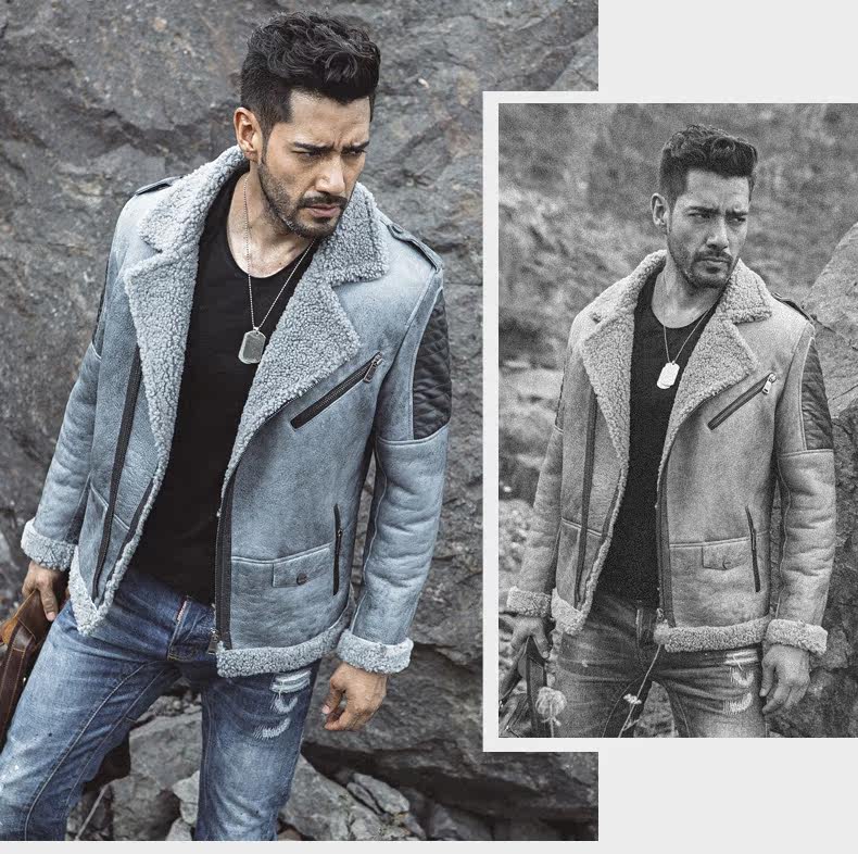 2018 зимняя утепленная кожаная куртка мужская одежда меховое пальто из кожи высокого качества из овчины мужское мотоциклетное пальто