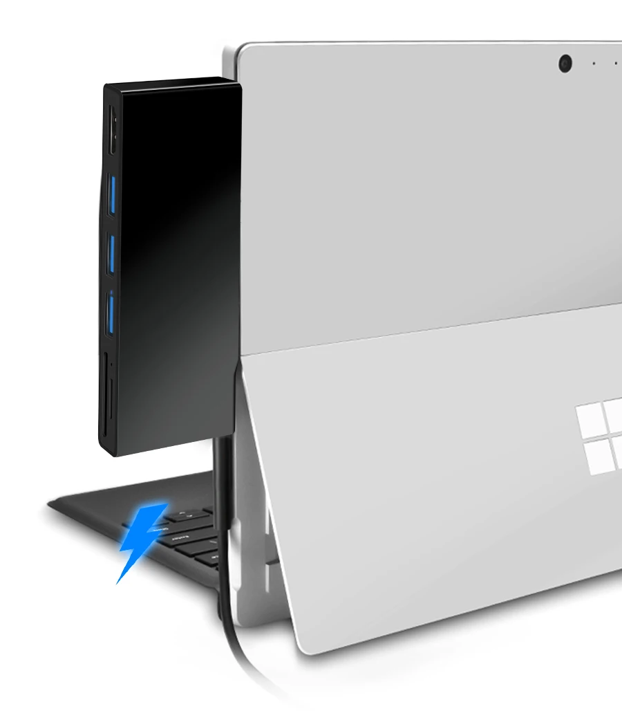 Суперскоростная Передача данных: данные синхронизации USB3.0 с блестящей скоростью до 5 Гбит/с-достаточно быстро, чтобы передать HD-фильм за секунды. Встроенный в SD и TF Слоты легко получить доступ к файлам с универсальной SD-карты и Micro SD; Поддержка 2 карт чтения одновременно. Уникальный дизайн: особенно компактный дизайн для Microsoft Surface, подключи и играй, легко путешествовать, куда бы вы ни пошли."Memory Card Reader USB 3,0 Hub Combo Adapter, Расширьте вашу Microsoft Surface на 4K HDMI-совместимые, SD/Micro SD карты и 2 порта USB 3,0. Простите свою жизнь без промедления. Наслаждайтесь визуальным пиром 4K UHD