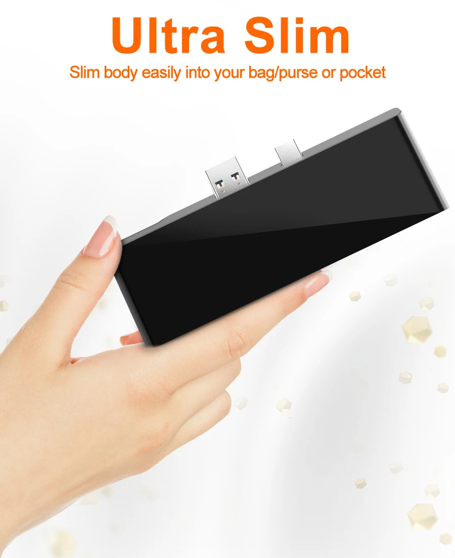 USB 3,0 концентратор добавляет дополнительные 2 порта USB 3,0 для вашего ноутбука, что позволяет подключать несколько периферийных устройств USB. Поддержка более быстрой передачи данных до 5 Гбит/с, 10x быстрее, чем USB 2,0. Предоставление бесшовного доступа к проводной клавиатуре, мыши, USB флэш-накопитель, жесткий диск и т. д.Multi расширение с SD и TF слоты