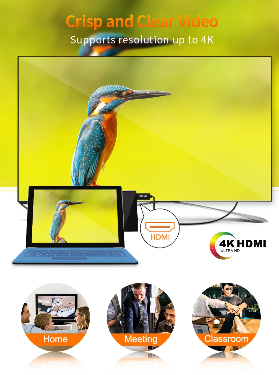 4K HDMI-совместимый видеовыход: Mini DP to HDMI-совместимый, поддерживает разрешение видео 1080P @ 60 Гц, до 4K @ 30 Гц и свободно показать дисплей высокого разрешения вашего ноутбука на большинстве HDTV, монитор или проектор с HDMI-совместимый порт.