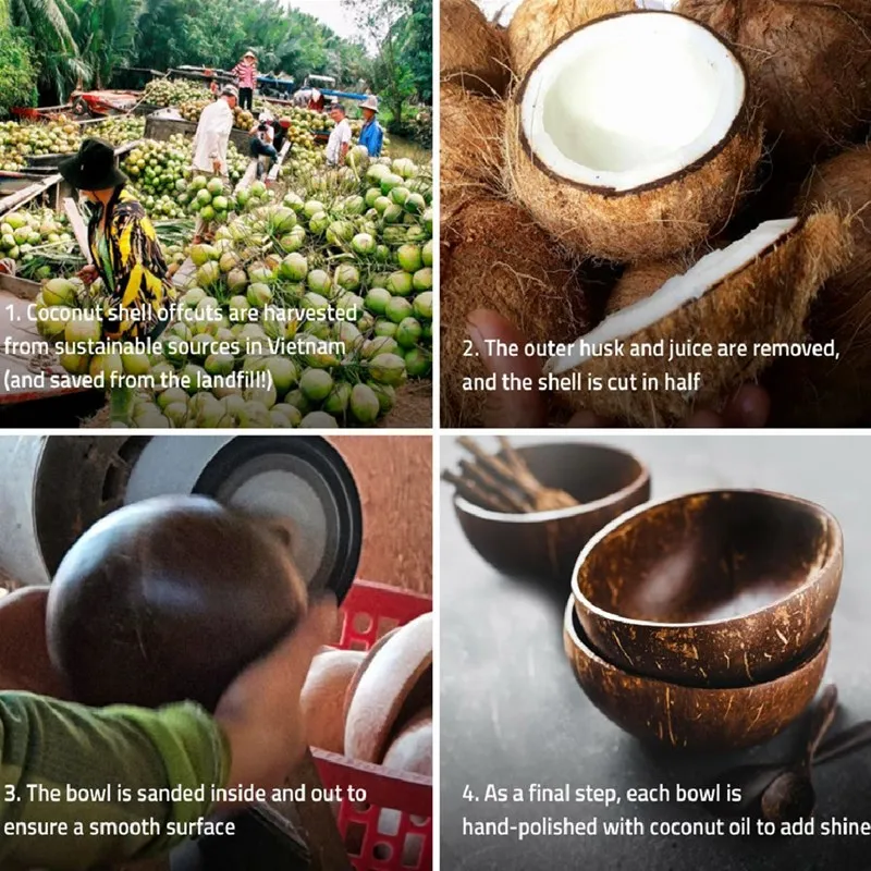 Уникальные чаши-каждая чаша изготовлена из собственной скорлупы кокосового ореха, что делает ее уникальной по своей форме, размеру, маркировке и дефектам. Ни один человек не 100% идентичен следующей, что делает этот продукт отличным. Уникальная идея для подарка.
