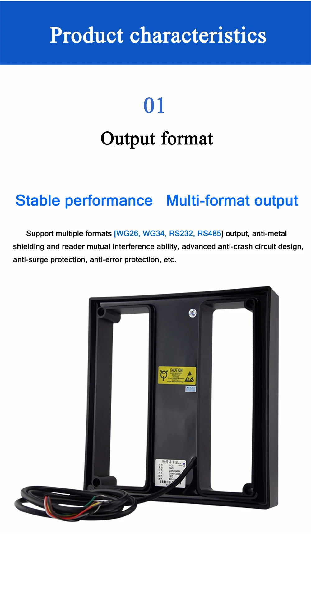 1) Интерфейс: Wiegand Нью-Йорк (26 / 34 / 42 бит), магнитной полосы, часы и данные, RS232 (9600, n, 8, 1), уровни ОВОС и TTL 2) Частота RF: 125 кГц (± 2 кГц, автоматическая настройка) 3) Технология: технология EM, поддержка карт EM4100 4) Антенна: встроенная антенна 5) Мощность: 7,5-13,6 В переменного тока, 300mA обычный (200mA при температуре не выше 7,5 V) 6) Время отклика: 200 мс 7) Размеры: 240x240x50 мм 8) Материал: АБС-пластик 9) Рабочая температура: от-20 °C до 60 °C 10) расстояние чтения: 60- 90 см, в зависимости от транспондеров 11) кабель: 10-way, длиной 1 м 12) Время отклика: 200 мс 13) Цвет: черный 14) Частота RF: 125 кГц (± 2 кГц Автоматическая настройка) 15) Мощность: 7,5-13,6 V DC 300mA обычный (200mA при температуре не выше 7,5 V)