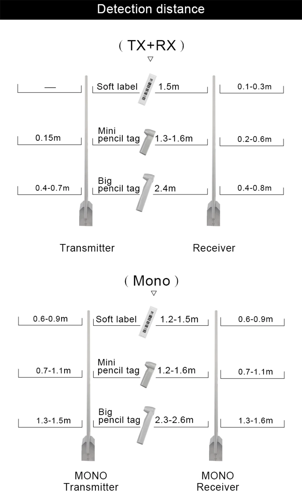 1) один кусок антенна может покрыть диапазон расстояний от 0,9 м до 2,8 м (в зависимости от фактических обстоятельств), самый широкий ряд защиты между двумя антеннами может достигать 1,7 м с мягким DR ярлыки. Может защитить 8,4 м ширина входной двери с тремя антеннами работают одновременно. Он идеально соединен с изысканным украшением торговых центров, легко защищает различные ширины выходов розничных магазинов; Поэтому он подходит для торговых центров. 2) увеличивая количество противоугонной антенны, выход магазина может быть расширен бесконечно, несколько антенн одновременно используются без синхронизации онлайн.