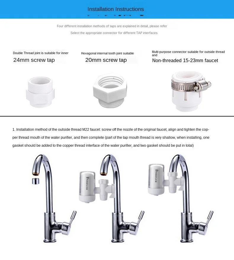 *Quickfit tap adapter,easy installation on almost any type of tap with screw thread.