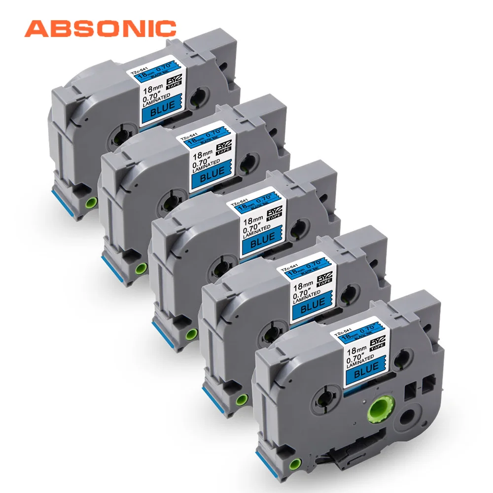 Absoonic 5 шт. TZ-541 TZe-541 TZe TZ лента картридж черный на голубом 18 мм совместимый Brother Label Maker P-Touch ламинированная этикетка лента