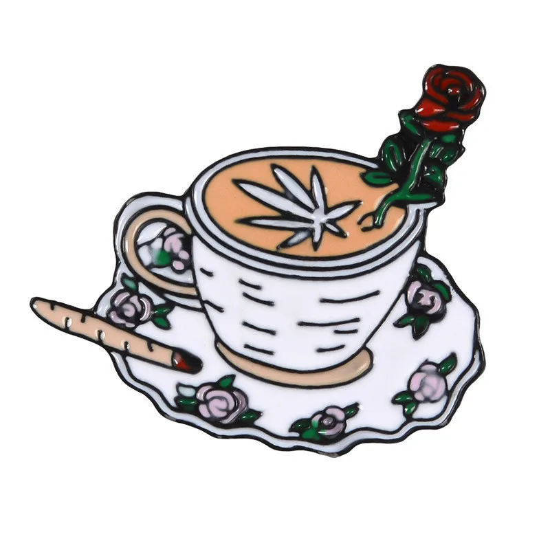 PGY модная металлическая Роза кофейная чашка OK жестовая брошь оптовая продажа сплав брошь воротник булавка для женщин подарок на день рождения