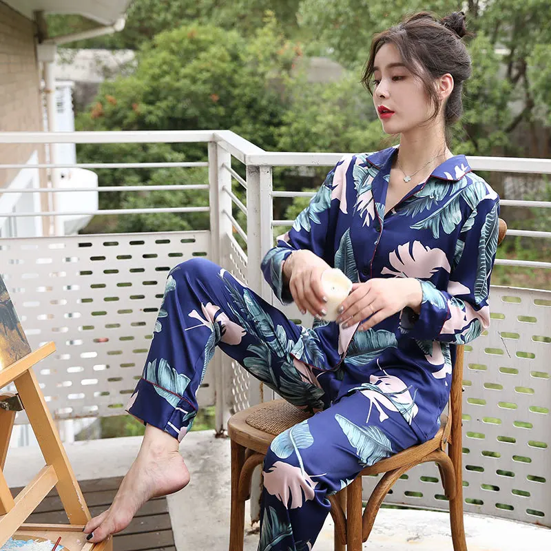 Женская пижама, новинка 2019, весенне-осенний комплект, шелковая шаль, Пижама для сна, женская пижама, ночная Пижама