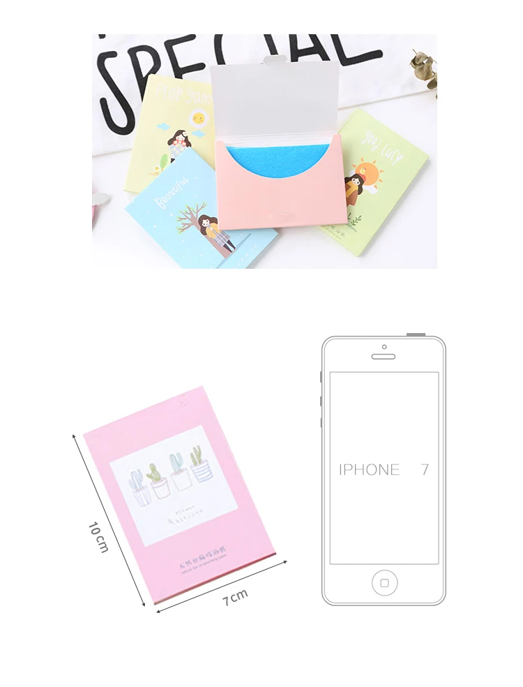 Основной материал: Бумажная масса Бумага Цвет: синий Цвет упаковки: отправка случайным образом Количество: 1 упаковка X 50 листов Посылка включает в себя: 2 упаковки (50 листов) масло контроль промокания бумаги Особенности: Эти масляные промокающие листы мягче, чем бумага, так что эти листы можно легко использовать вокруг носа и других частей лица. Маленькая тонкая посылка помещается практически в любую сумочку, сумку для подгузников или карман. Очистите кожу и подготовьте ее к более гладкому нанесению макияжа, поглощая избыточное масло кожи. Используйте их в любое время, в любом месте, чтобы удалить масло и блеск в течение дня. Эти прямоугольные промокающие бумаги идеально подходят для использования поверх макияжа