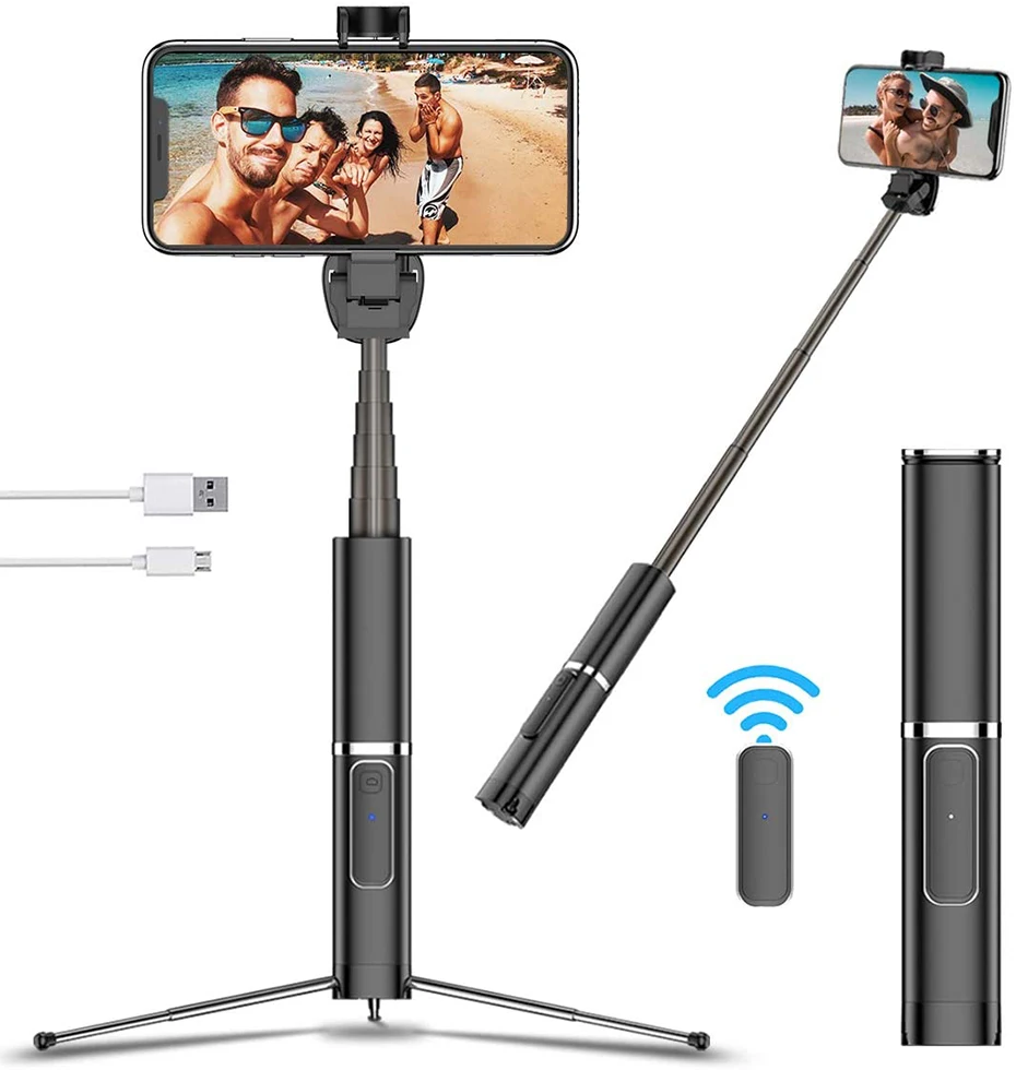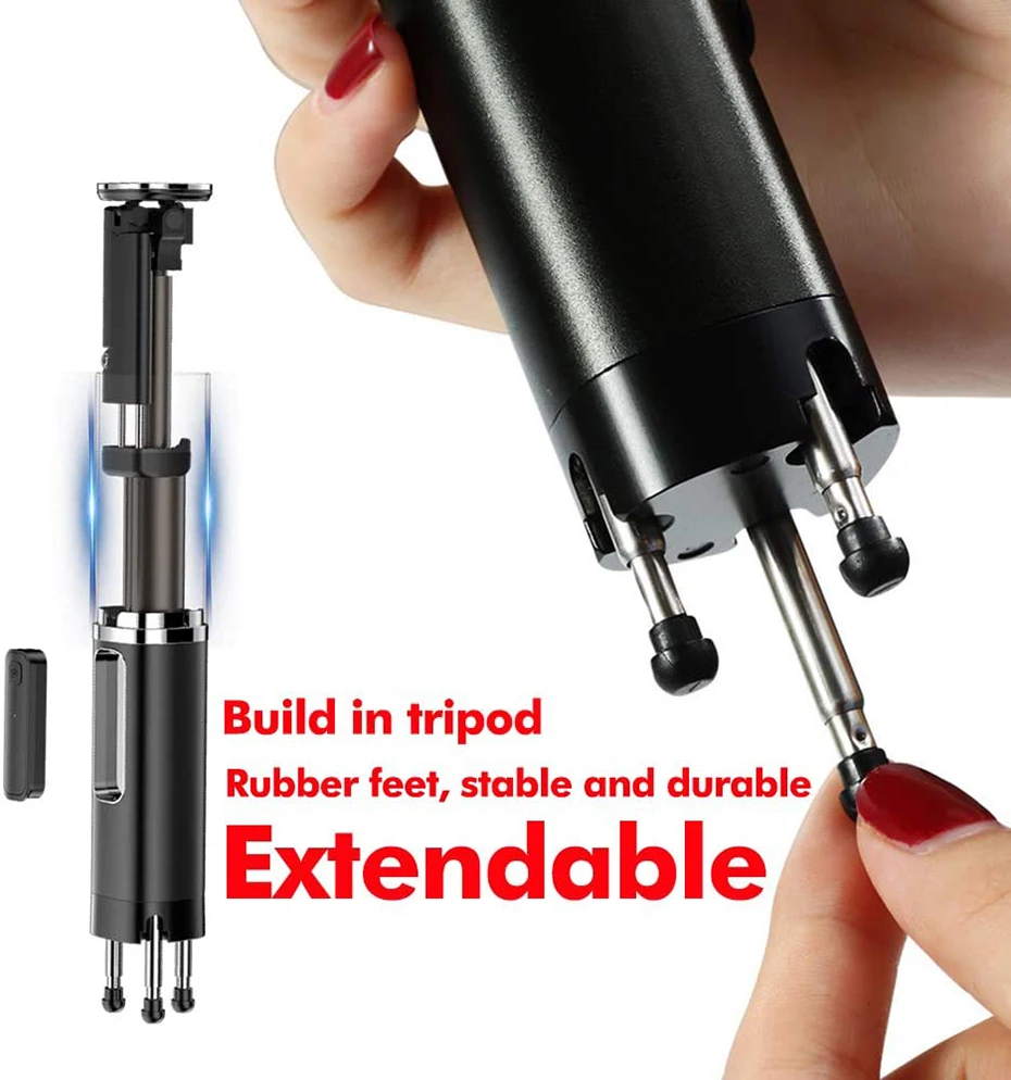 1 новый дизайн-Традиционный комплекс selfie штативы-палки требует установки разнообразных аксессуаров, доставит много хлопот в наши путешествия. Этот универсальный встроенный Штатив для селфи-палки отличается новым дизайном, портативным, легким и беспроводным Управлением по Bluetooth. Изготовлена из высококачественных материалов, с телескопической трубкой 6 секций. Штатив с резиновыми ножками, устойчивый и противоскользящий. Крепление для телефона из АБС-пластика с выдвижным зажимом и противоскользящим силиконовым ковриком, плотно и безопасно.
