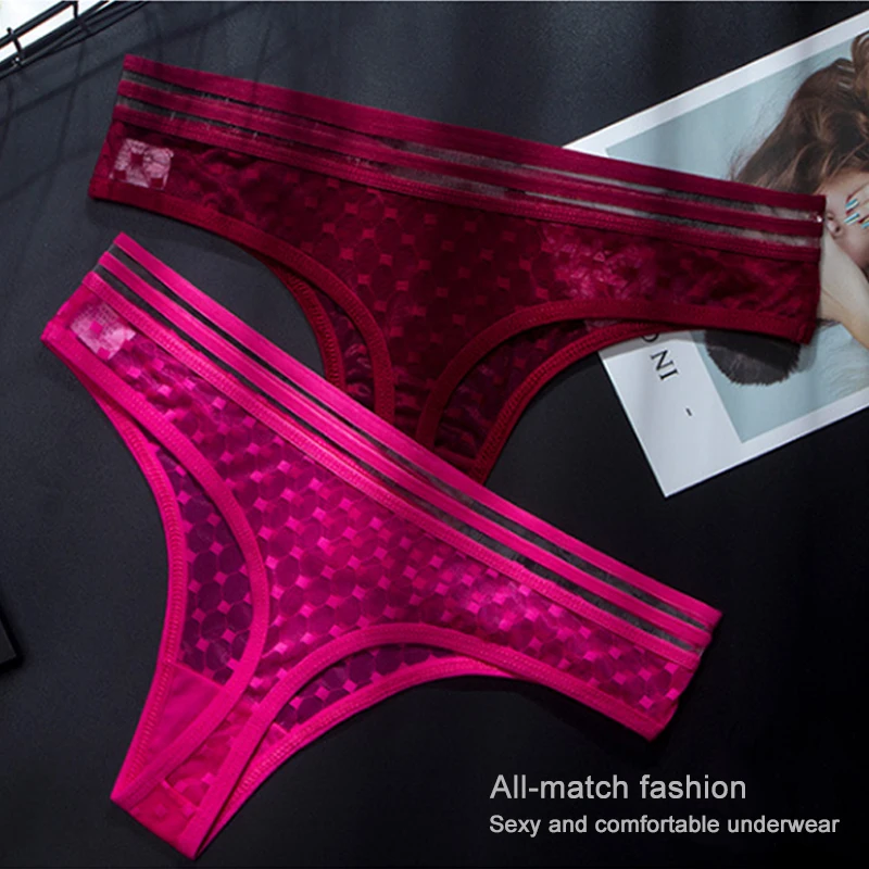 Новое летнее однотонное женское пикантное прозрачное белье Сетчатое низкая талия Бесшовные цельные женские трусы стринги