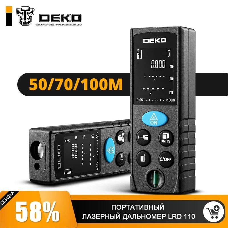 The DEKO LRD110-50m laser rangefinder is used to measure the distance to an object without approaching the object itself. High measurement accuracy is provided by the laser built into the device.
