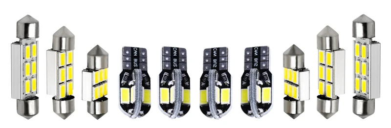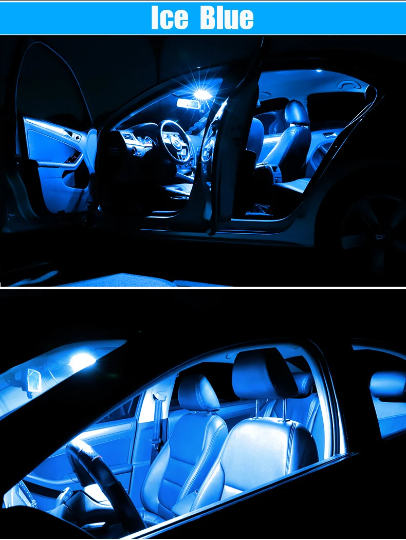Карта освещения (2 шт.) Купол (1 шт.) Шаг/вежливое освещение (2 шт.) Подсветка номерного знака (2 шт.) Запасной светильник 2 шт.) Все светодиодный лампы на 100% подключены и работают без необходимости модификации.
