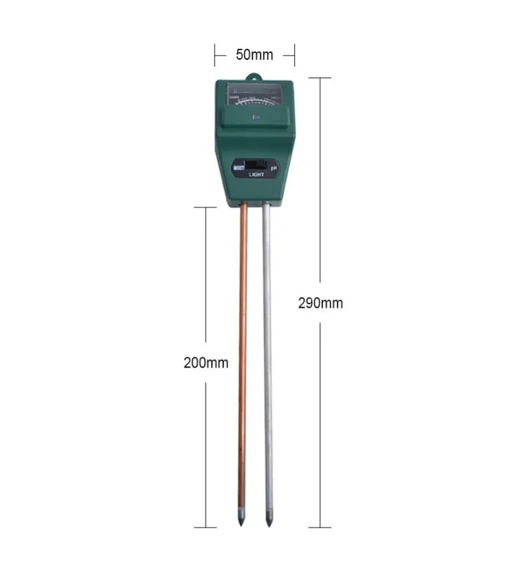 Характеристики продукта: Длина зонда: 20 см Владельцы растений, садовники не могут жить без! 3 в 1 измеритель влажности и PH анализатор почвы. Для наружных и внутренних растений, садов и газонов. Сделайте предположение, что ваш ежедневный сад поливает свет и влагу. Экономьте воду, энергию и держите ваши растения, газон, цветок в отличном состоянии. Измеряет влажность на уровне корня. Предотвращает полив С научной точки зрения. Прост в использовании, просто вставьте и прочитайте. Аккумулятор не требуется, простой и удобный в использовании Просто вставьте счетчик в почву, переключитесь на настройки, которые вы хотите измерить, и прочитайте масштаб. Чтобы избежать повреждения электрода, пожалуйста, очистите электрод после каждого из нас Упаковочный лист Упаковочный лист: 1 * измеритель ph почвы 1 * Заводская стандартная упаковка