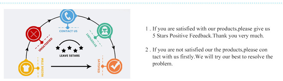 1. Если вы удовлетворены нашей продукцией, пожалуйста, дайте нам 5 звезд положительные отзывы. Большое спасибо.