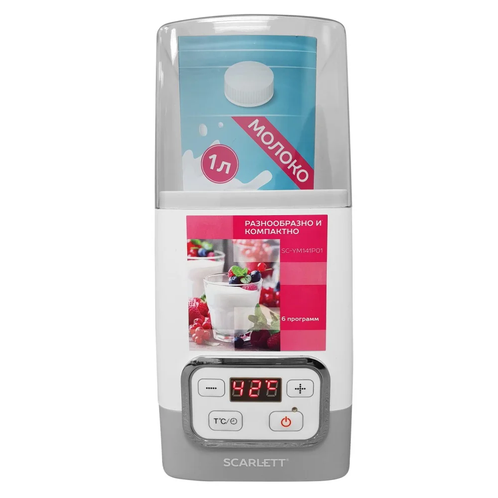 Йогуртница SCARLETT SC-YM141P01 - компактный и практичный прибор на любой кухне. Малогабаритный (13.8 см 12.9 см 28.3 см) прибор способен на приготовление ряженки, опары, кваса, кефира, простокваши, творога, сыра, проращивание зерен. 6 предустановленных программ + "Мой рецепт" помогут разнообразить ежедневный рацион с пользой. Приготовление йогурта в заводском пакете молока (1 литр) экономит время и силы - SC-YM141P01 не нужно мыть! Ножки с резиновым покрытием позаботятся о безопасности. Мерный стаканчик для заквасок и книга рецептов в комплекте.