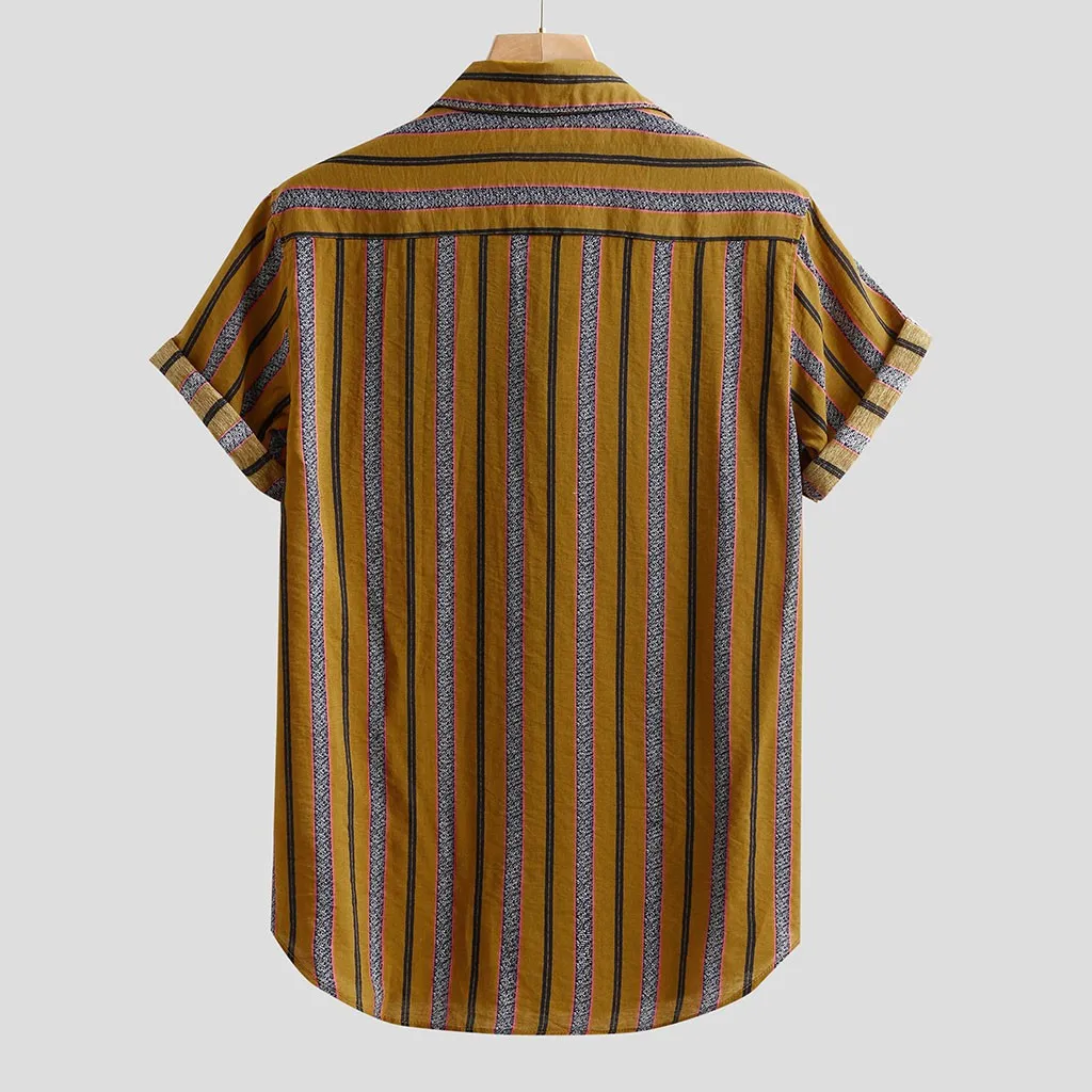 Мужская разноцветная полосатая летняя Свободная рубашка с коротким рукавом и пуговицами на каждый день Особенности: 1. Он изготовлен из высококачественных материалов, достаточно прочный для ежедневной носки 2. Идеально сочетается с вашими любимыми шортами и т. д. 3. Отлично подходит для вечерние, повседневные, пляжные, я уверен, вам понравится! 4. Носить его сделает вас более красивым Информация о продукте: Сезон: все сезоны Повод: Повседневная, Повседневная Материал: хлопок + полиэстер Длина рукава: короткий рукав Стиль: Модный, повседневный Размер: Соответствует размеру Толщина: Стандартная Как стирать: Ручная стирка в холодной воде, подвешивание или сушка Что вы получаете: 1 шт. мужская рубашкаПол: мужчин