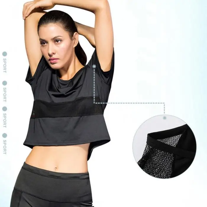 Женская спортивная одежда быстросохнущие дышащие свободные топы с сеткой для йоги JT-Прямая поставка