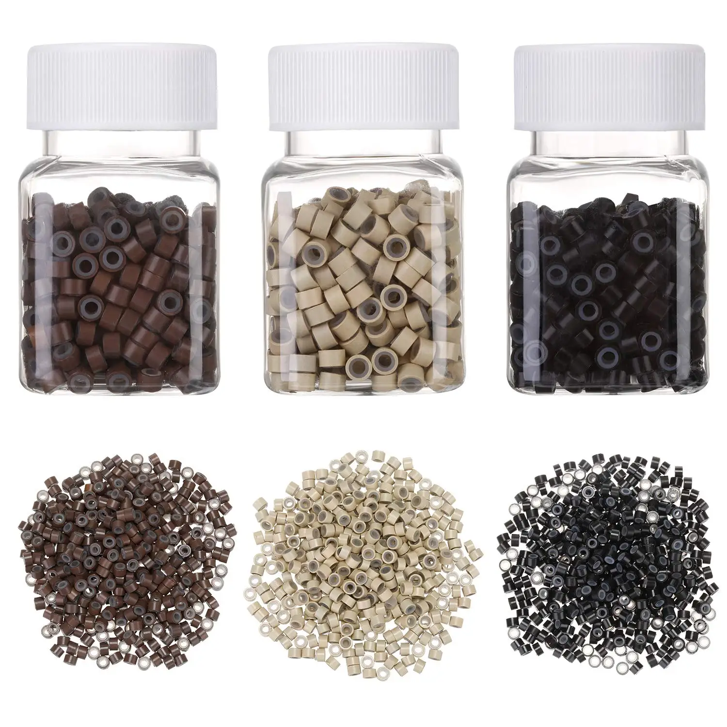 Хит! 1 комплект, 3 бутылки, 1500 шт., 5 мм, микро звенья/бусины + 2 шт., Тянущая игла + 1 шт., 3 отверстия, плоскогубцы, набор инструментов для наращивания волос