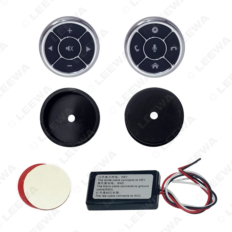 Особенности:(1) Новая ультра тонкая 10 пользовательских функций Беспроводная кнопка управления рулевого колеса автомобиля(2) Новый ультра тонкий дизайн формы, более гладкое ощущение прикосновения и простота установки.(3)* Примечание * это не пульт дистанционного управления, это настоящая кнопка управления рулевого колеса автомобиля для вашего стерео(4) поскольку это истинное управление рулевым колесом автомобиля, пожалуйста, подтвердите, что ваш автомобильный стерео поддерживает функцию «Управление рулевым колесом»(5) поддерживает все функции, такие как (Vol +/-,Mode,Bluetooth phone,Pre/Next и т. д.)* Важное примечание *Это универсальное управление рулевым колесом, поэтому мы не можем гарантировать, что каждая клавиша будет соответствовать вашему оригинальному рулевому колесуФункция кнопки 100%, как правило, 1 ~ 2 Кнопка неисправности, это нормальное состояние, если вы не можете принять это, пожалуйста, неЗакажите его! OEM CD радио или другой CD-плеер не заказывают его.* Это Универсальный руль управления совместим только с автомагнитолы, которые используют 3,3 V ~ 5V рулевого управления сигнала.Пожалуйста, сообщите об этом!Упаковочный лист:2x Автомобильная умная Беспроводная кнопка управления рулем1 коробка приемника2x Монтажная резиновая чаша2x двусторонняя клейкая лента