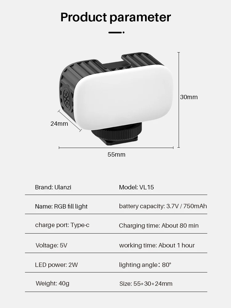Многофункциональная СВЕТОДИОДНАЯ мини вспышка Ulanzi L1 Pro 10 м Водонепроницаемая с 20