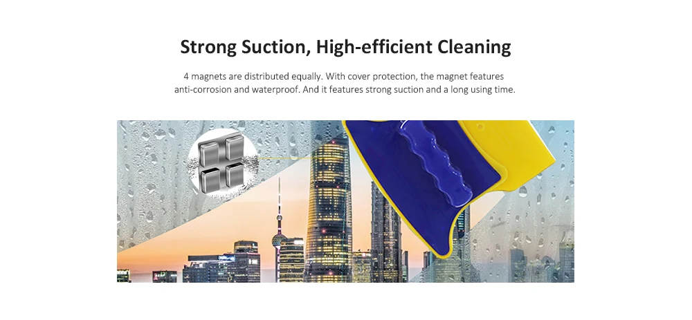Мощные внутренние магниты блокируют две чистящие стороны (губка с резиновый скребок) вместе через стекло, поэтому при движении одной стороны другая сторона следует