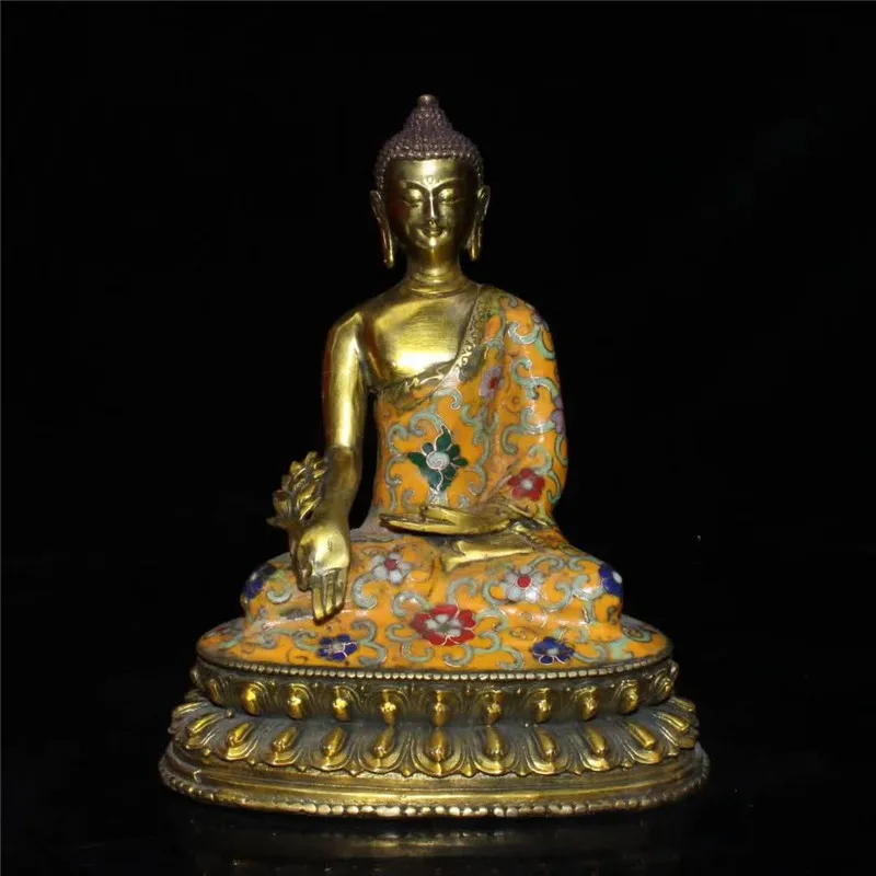 Китайская перегородчатая латунная резная Цветочная Статуэтка сидящий Будда медицина Будда Medi...