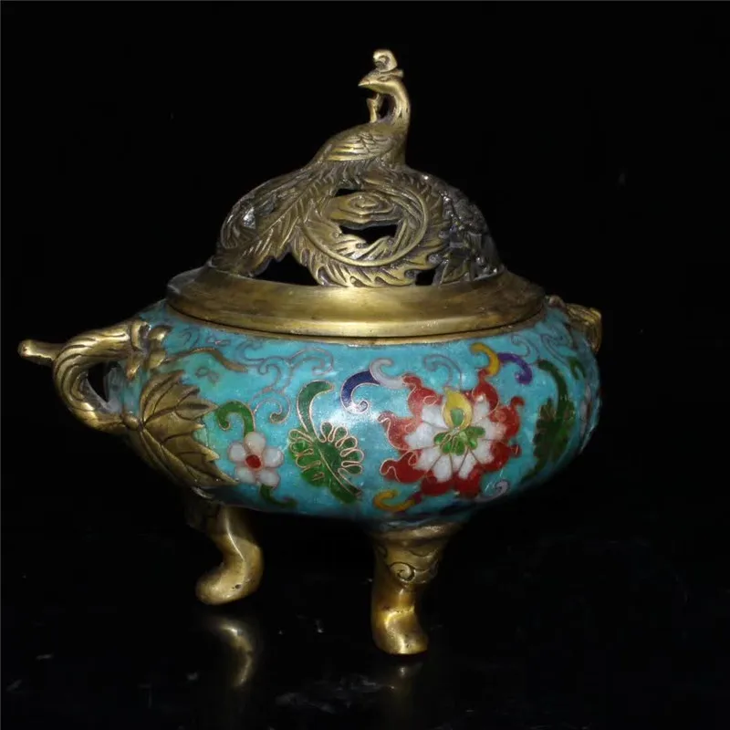 Тибетский буддизм благовония горелка медные в технике перегородчатой эмали Censer летучая мышь Феникс Дракон Статуя...