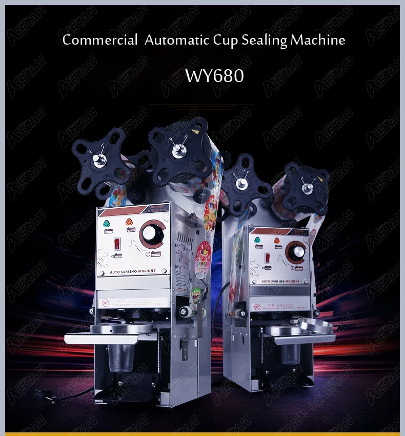 Полуавтоматическая машина для запечатывания пластиковых бумажных стаканчиков для чая 450 ~ 500 стаканчиков/час, электрическая упаковочная машина для молочного чая