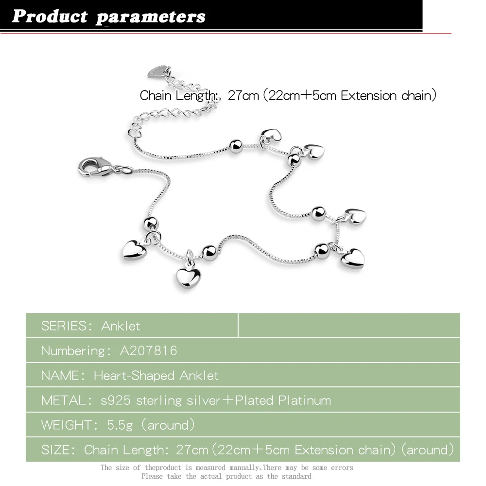 Женский браслет на щиколотку трендовые серебристые с 925 пробы для девушек