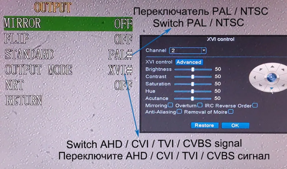 Совет: если вам необходимо выпустить сигнал TVI / CVI по умолчанию
