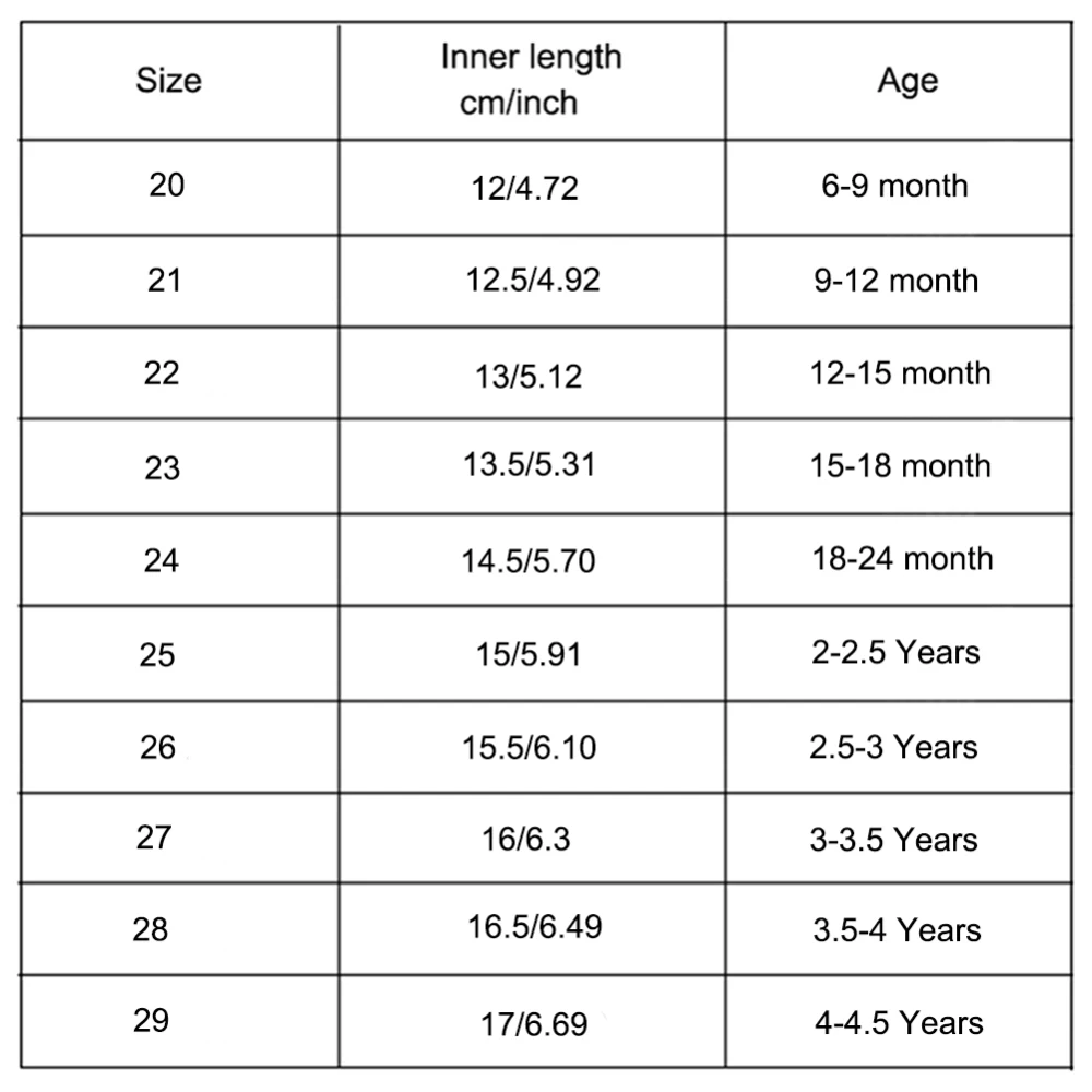 - Size: 20, 21, 22, 23, 24, 25, 26, 27, 28, 29