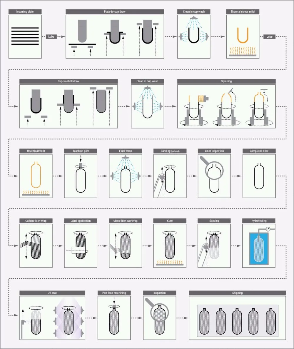Our high pressure cylinder is wrapped byFOUR-DIMENSIONAL THREE-SPINDLEwinding machine withSIEMENSsystem