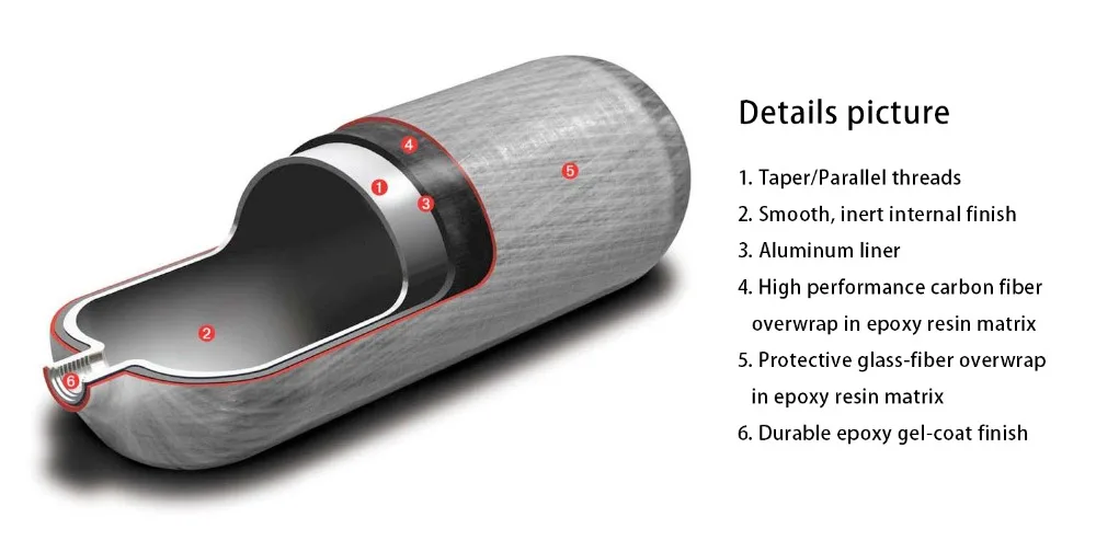 Acecare AC10211 2L 4500psi Carbon Fiber HPA Cylinder Air Tanks For Compressed Guns Underwater Hunting Weapons Airforce Condor