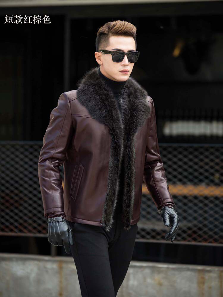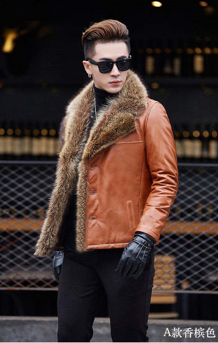 Мужская кожаная куртка с воротником из меха енота, кожаная теплая куртка из натуральной овечьей кожи, зима 2019
