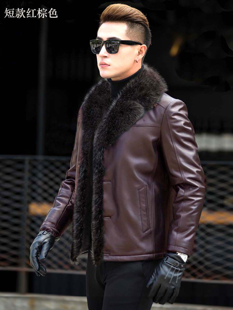 Мужское зимнее пальто с воротником из натурального меха енота, кожаная куртка с шерстяной подкладкой, chaquetas de cuero genuino para hombre veste cuir biker homme